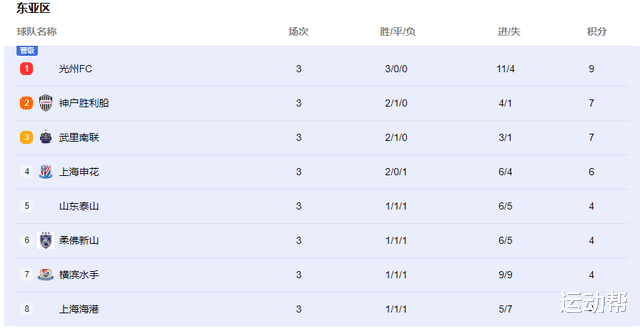 从目前积分榜来看,东亚赛区的十二支球队中韩国、日本和泰国的球队位列前三名,三支中超球队上海申花、山东泰山以及上海海港分列第4、第6和第8位,其中上海申花2胜1负战绩最好,山东泰山和上海海港都是1胜1平1负。申花也为最后晋级淘汰赛占领先机,最后两场决战可以放手一搏。